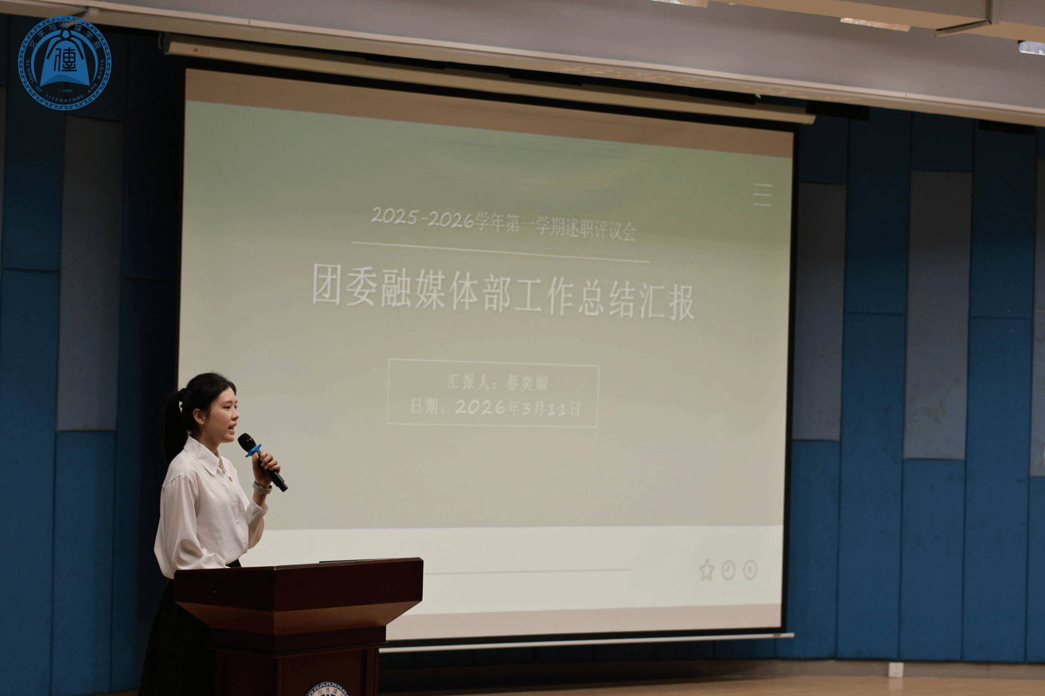 随后,团委员工会各部门依次述职,总结回顾上学期的工作情况,全面复盘不足之处,并对未来的工作进行科学安排。在活动策划和风采展示等方面,各部门均取得亮眼成果。例如,实践部所跟进落实的各式活动,增强了师生联系,提升了文传的凝聚力;学风建设部所组织筹办的各类赛事,调动了员工学习积极性,促进了校园文化的建设。