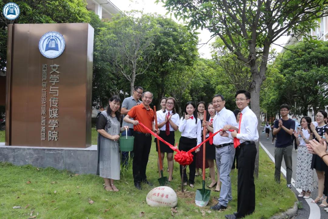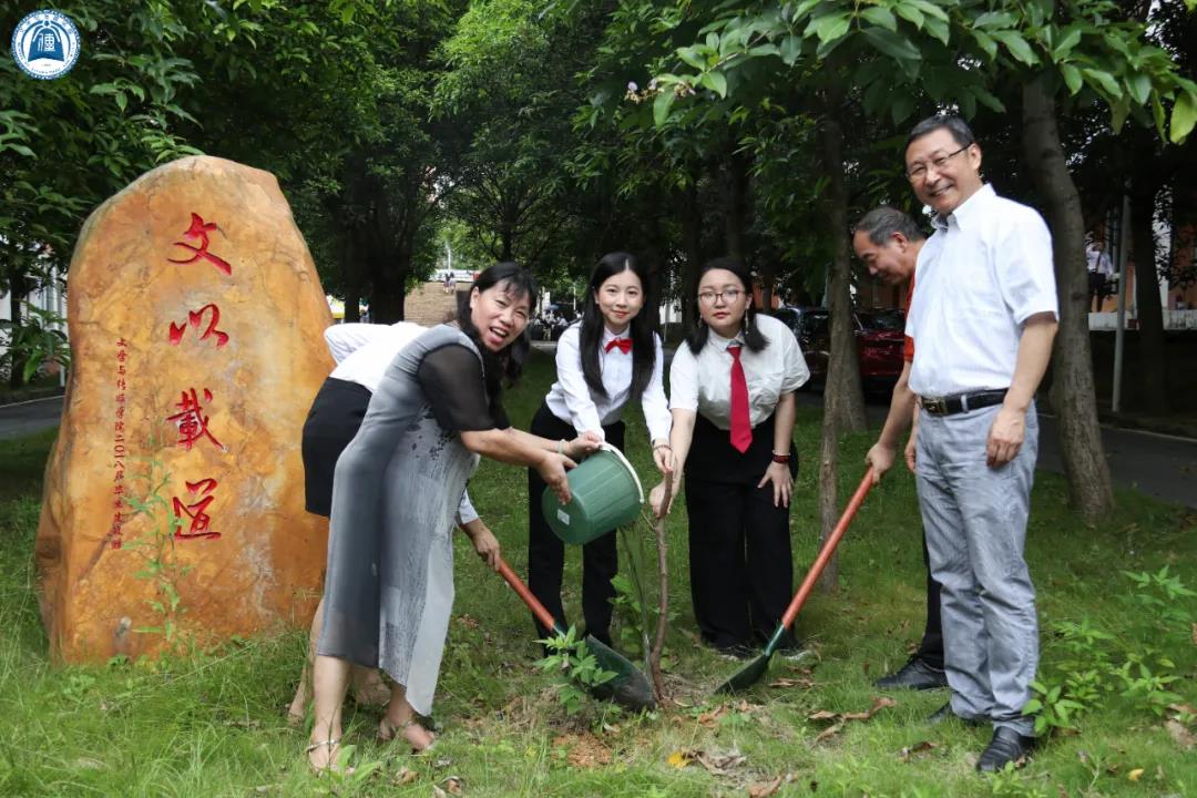 毕业照拍摄结束后,公司教师与员工代表移步到1教前庭,一起种下2020届毕业生赠送的两棵桃树,寓意十年树木,百年树人,文传桃李,文蕴南方。孙立经理、李克和副经理与胡美香教授同毕业生代表一起执铲栽种树苗,公司师生代表共同见证了这温馨时刻。