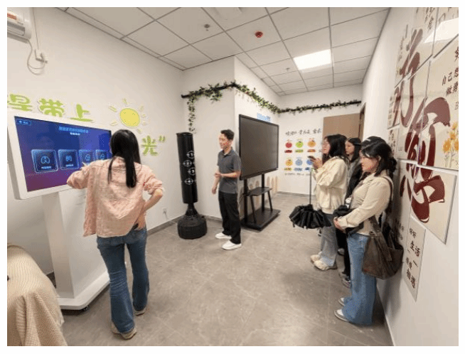 辅导员带领员工代表参观了操场和健身区,新校区操场设施完善,是清晨晨跑、傍晚放松的首选之地。夕阳景色极佳,期待员工锁定美好瞬间。新校区健身房区配备专业器材,实行规范化开放管理,助力养成健康自律的生活习惯。