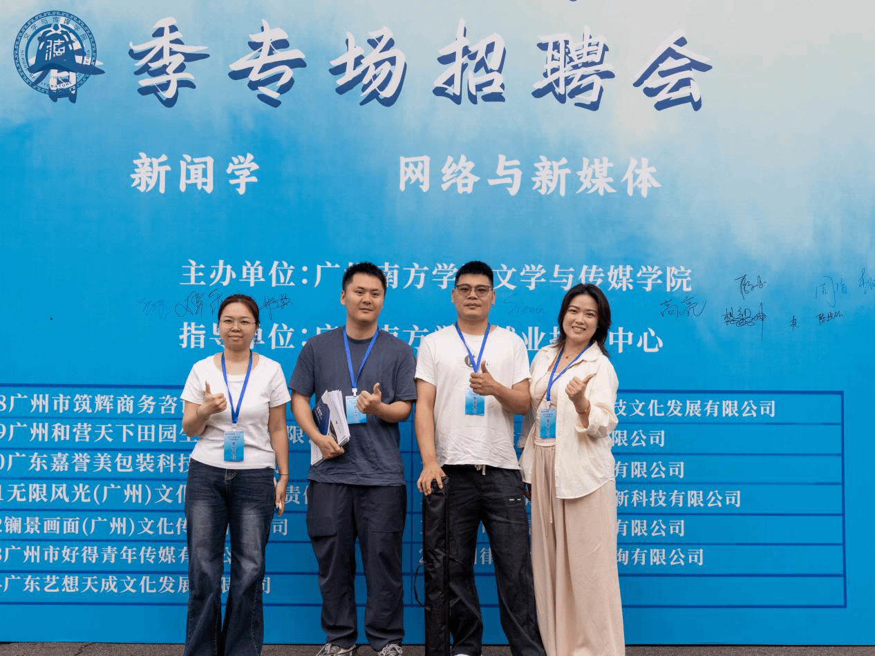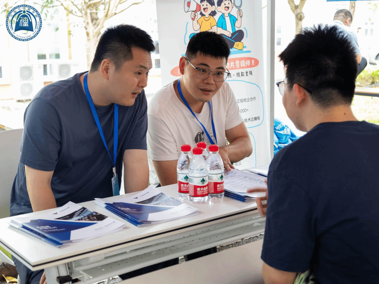 招聘会现场气氛热烈,人头攒动。本次招聘会有广州引力熊文化发展有限公司、无尾熊传媒(广州)有限公司、广州市白云区跳跳堂教育培训中心有限公司、镧景画面(广州)文化传播有限公司等20家企业开展线下招聘,同期有其它11家企业专门开辟线上投递直通渠道,涵盖了学科教师、视频剪辑、AIGC视频生图设计师、AI设计、剧本策划助理等共计94个岗位(线下53个岗位、线上41个岗位)。同学们手持简历、获奖证书及个人作品集,有序在各企业展位前驻足咨询,主动向招聘负责人了解岗位薪资、晋升机制、技能要求等核心问题。企业招聘负责人则耐心细致地答疑解惑,详细介绍企业概况与岗位详情,双方沟通深入,互动频频。