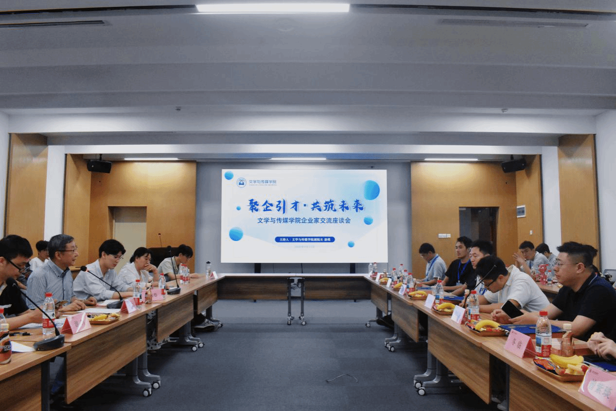 当天下午,企业家座谈会在中和楼第一会议室召开,特别邀请公司夏亮辉副董事长莅临指导,旨在搭建校企交流平台,深化产教融合,促进毕业生高质量就业。来自文旅、新媒体、影视、管理咨询等行业的企业代表围绕企业用人偏好、员工能力短板、职业规划建议及校企合作方向等议题展开交流。