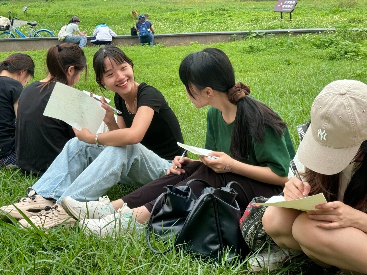 抵达风云岭,满目青翠,春风拂面。众人沿小径步入指定区域,眼前开阔的草地与远处的山峦相映成趣,一派生机盎然。策划组迅速就位,将野餐食品、饮用水和游戏道具等取出,其余成员分工协作,随后一方简洁温馨的活动场地便布置妥当。