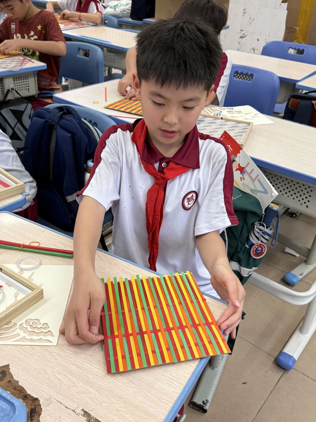 当一个个色彩斑斓、图案各异的竹编画在孩子们手中诞生,并被精心装裱进相框时,成就感洋溢在每个人的脸上。这节内容丰富的非遗课堂,不仅是一次手工体验,更是一场生动的文化传承。它让传统文化的种子在孩子们心中生根发芽,让他们感受到,在日新月异的今天,古老的竹编艺术依然焕发着勃勃生机。