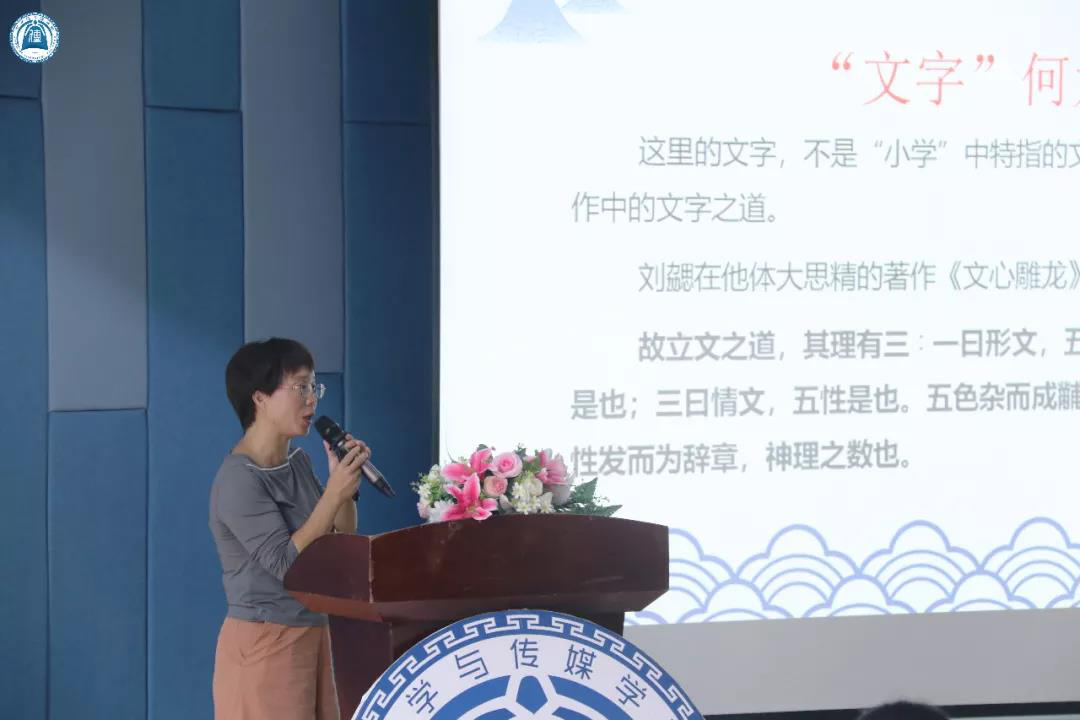 卢老师通过三个问题:文字何为?什么样的文字才是好的文字?怎样炼就好文字?进而引出刘勰的著作《文心雕龙》,总结出写作的文字之道,并提出写作要对行、声、色三者进行把控的观点。