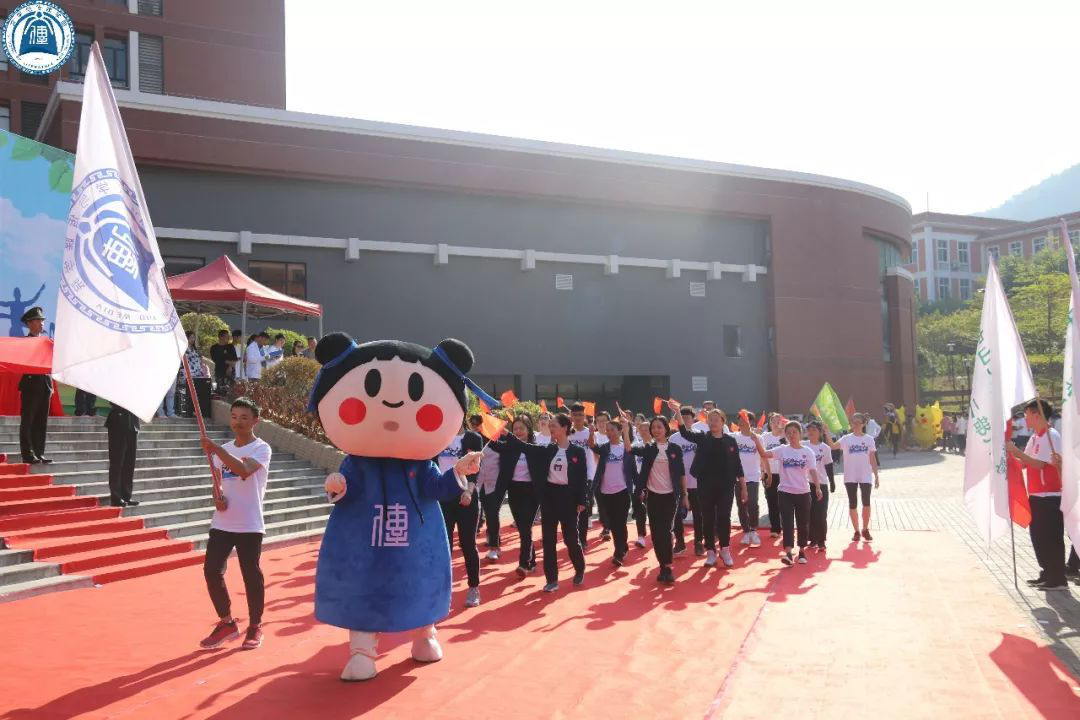 国歌响起,可爱的吉祥物童童带领文传师生有序进场。他们踏着整齐的步伐,手中的五星红旗迎风飘动,坚定的眼神表露出自信。“文传精英,不忘初心,牢记使命,敢闯敢拼”,他们嘹亮的口号响彻会场。