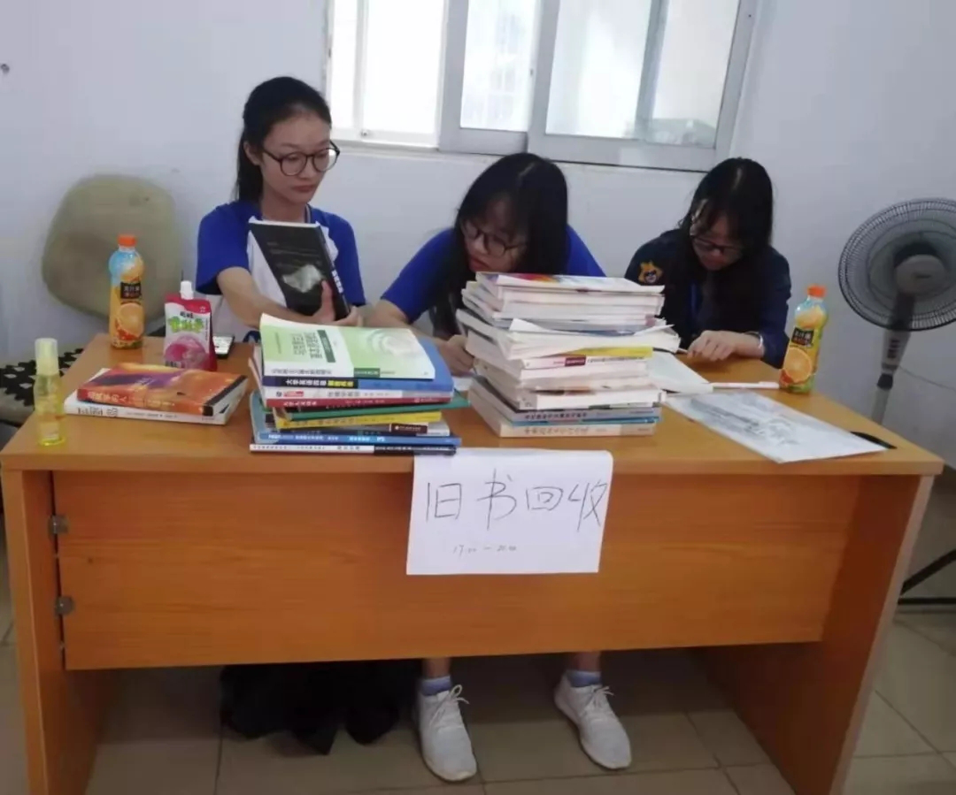师兄们即将辞别母校,踏上逐梦之旅。他们肩负行囊,怀揣理想,对于无法带走所有的旧书,捐赠到回收摊位处无疑是最佳选择。旧书由生活部和员工党支部的工作人员登记成表,以便更好地供同学们领取。领书流程也十分简单,同学们看到有喜欢、有帮助的书,登记完后便可拿走。