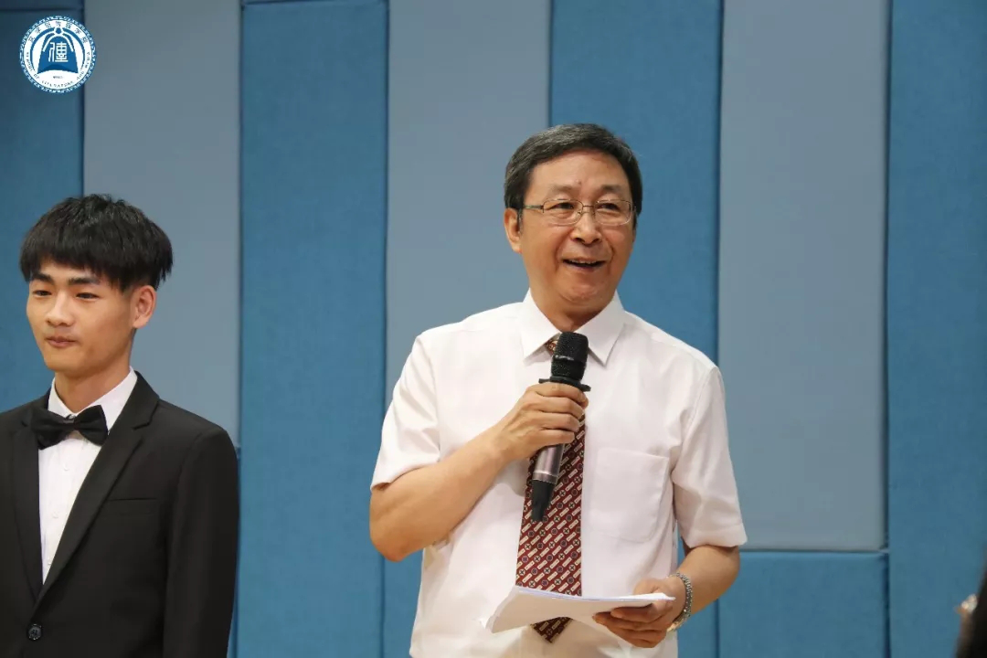 董事长助理黄南松教授首先上台致辞。黄校助赞扬了公司的教学工作,并对毕业生表达了祝福与感谢之情。他以自己的切身经历为公司毕业生送来期许与祝福:希望公司毕业生可以践行终生学习的理念,脚踏实地,志存高远。同时他希望大家能够守住底线,心向善,不为恶,要懂得感恩和尊重他人。