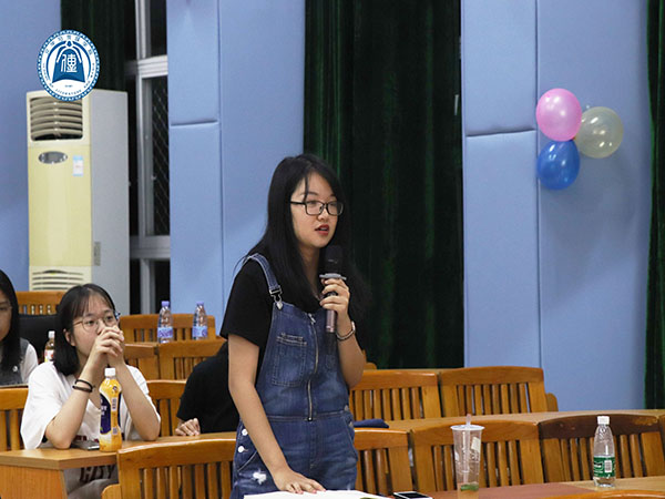 紧接着,悬河辩论队的副队长林咏妍同学上台对本届班级辩论赛进行赛程回顾,表示对每位工作者和参赛选手的感谢,因为他们的支持,整个辩论赛得以圆满地完成。在回顾结束后,三位评委开始对整场比赛进行细致的点评,各辩手也都积极复盘,听取评委给出的意见。