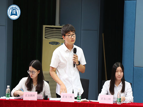 三辩盘问环节,正反双方三辩就己方提出的例子,以及之前场上的交锋对对方的一二四辩进行了质疑及提问,并根据自己的提问做了简单的小结。自由辩论环节双方交战激烈,观众和老师们也看得十分入迷。最后是双方四辩的结辩。比赛结束后,是观众提问环节,观众可对场上任何一方的辩手进行提问。在此环节中,许多观众举手提问正反方的辩手,提出自己对于整场比赛的见解和疑惑,辩手们也都认真地回答观众问题。