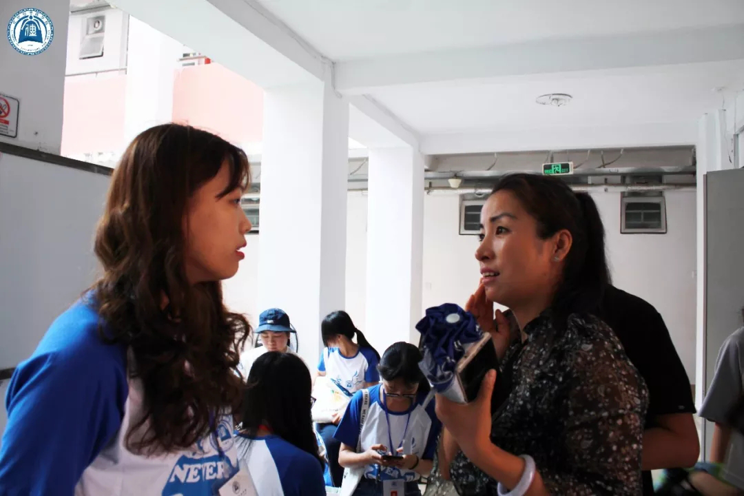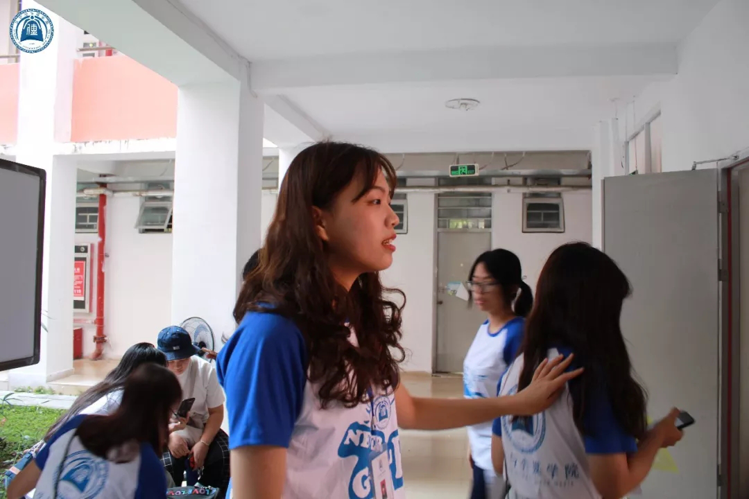 随处可见身穿文传蓝色院服的学长学姐们带领新生入住宿舍,即便是看起来瘦弱的女生,帮忙提起行李来也十分稳当。她们互相递着纸巾擦拭汗珠,交谈时揉着酸痛的肩膀,脸上却洋溢着笑容。在学长学姐的热情帮助下,新生完成了报道的所有程序。