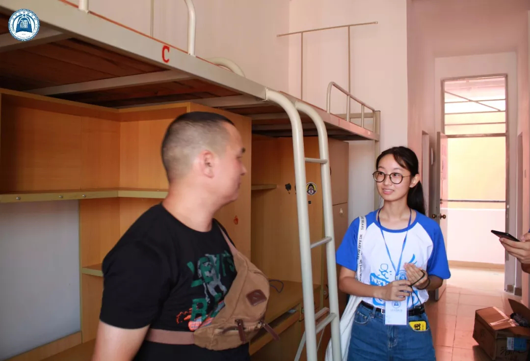 在男生宿舍楼,我们采访了一位18级汉语言专业的陈同学。陈同学7号就来到了公司,把事情安排得妥妥当当,所有的入学事宜也都早已处理完毕。