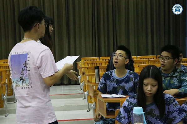 “明月几时有,把酒问青天”,公司新生队伍用《水调歌头》作为开场曲,应中秋节这个团圆的日子,勾起了新生们浓浓的思乡之情。当新生们演唱校歌时,铿锵有力的歌声中有女高音的优美动听,也有男低音的稳重浑厚,各富特色的男声女声彼此结合,便是林籁泉韵,绕梁三日。