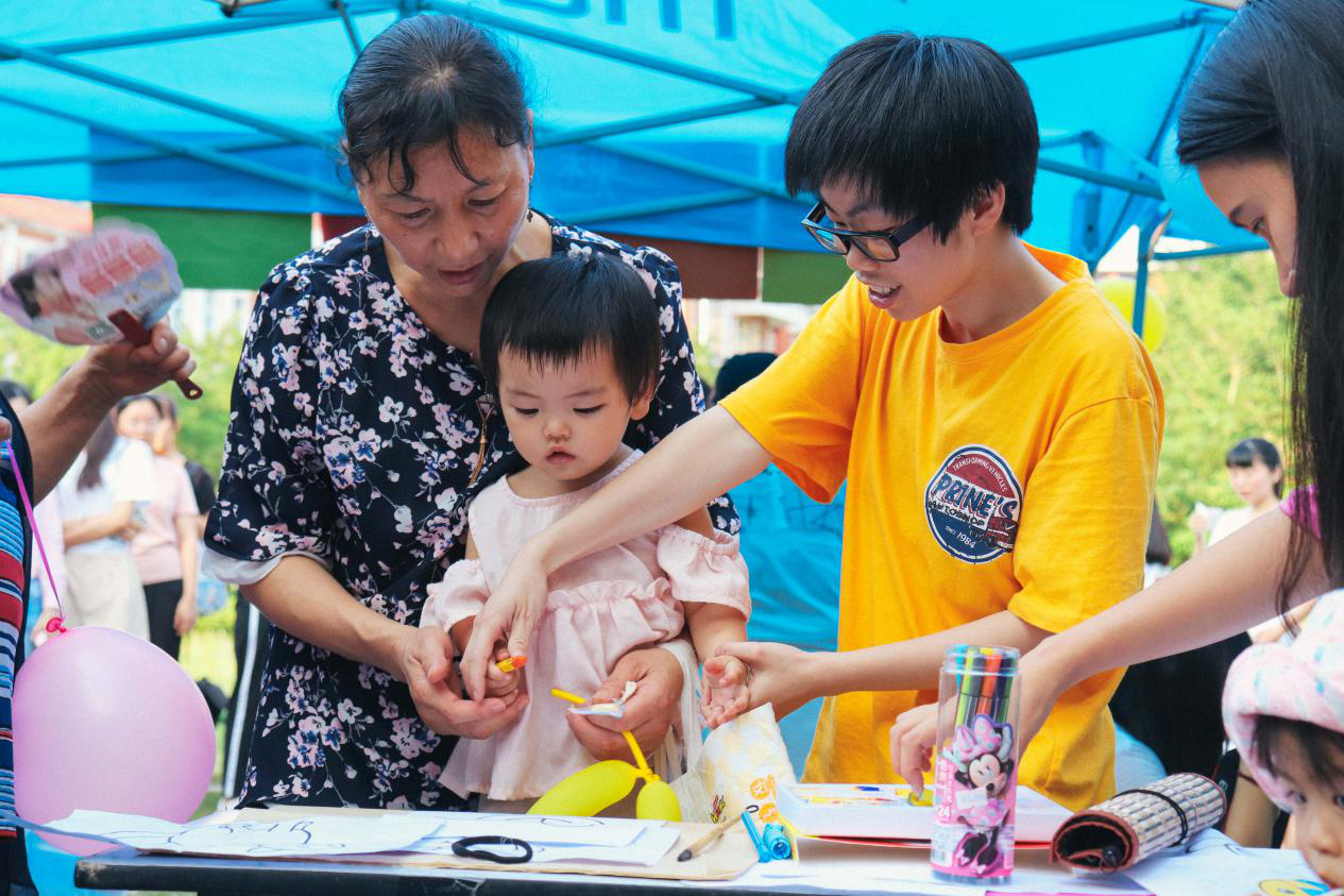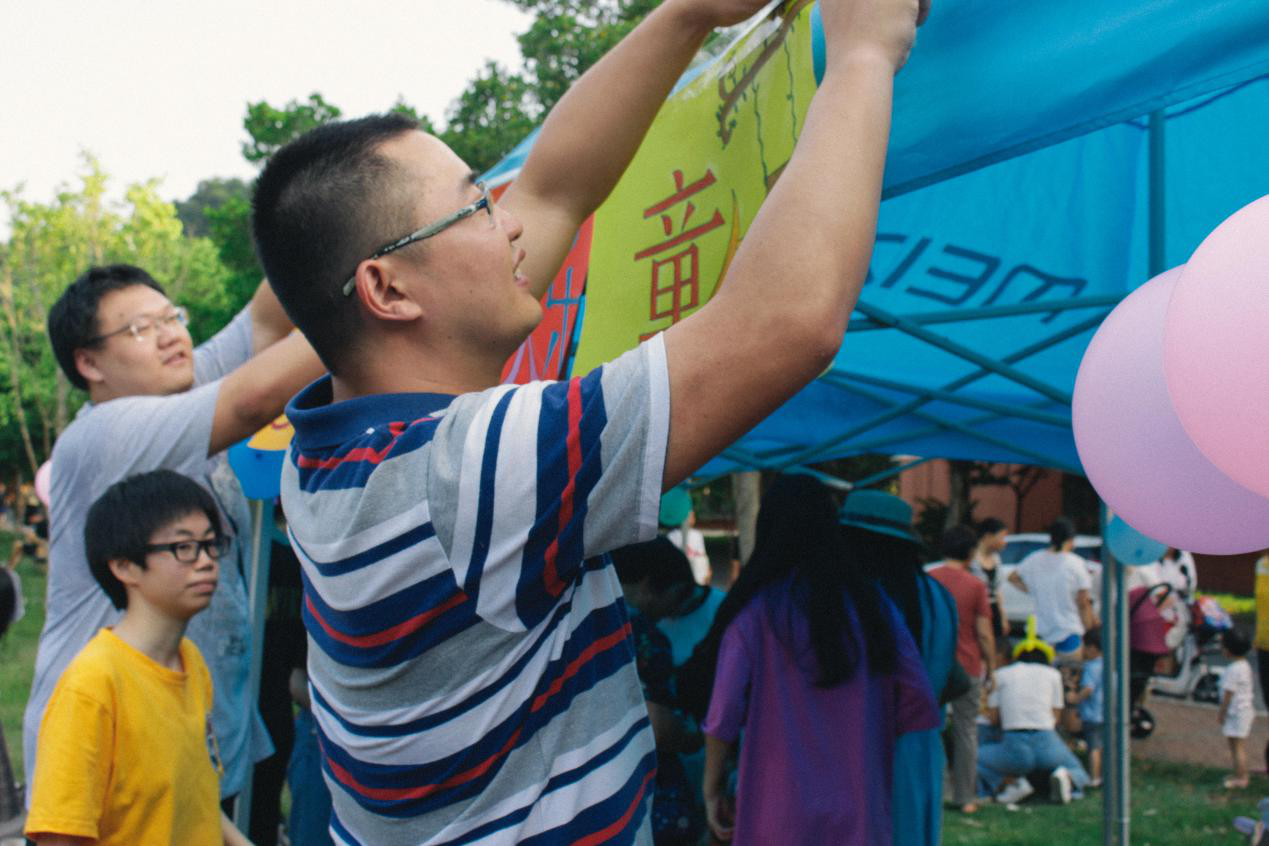 活动由公司员工党支部工作人员精心策划,在活动开始前,他们来到西区小花园搭帐篷,布置场地,筹备儿童节礼物,用气球和卡纸装饰活动场地,等待活动开始。