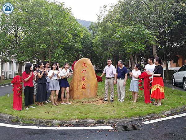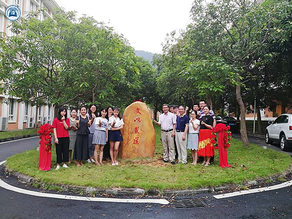 刻石揭幕仪式在6月21日下午4点的阳光与细雨中开展。经理孙立老师、副经理李克和老师、办公室主任李娜老师及文传部分老师到场见证揭幕仪式。