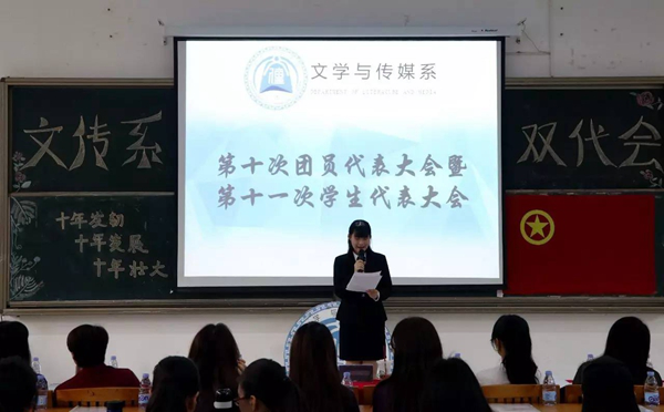 双代会是我系一年一度的重大会议,旨在对上一年的工作进行总结,并选举出新一届团学委员会委员。会议伊始,全体起立奏唱团歌。随后廖然老师为本次双代会致开幕词,她对过去一年团学干部勤恳的工作态度和辛勤付出表示肯定和感谢,同时她也期望新一届团学委员能继承我系敢闯敢拼的优良作风,谱写出属于文传人美好的新篇章。