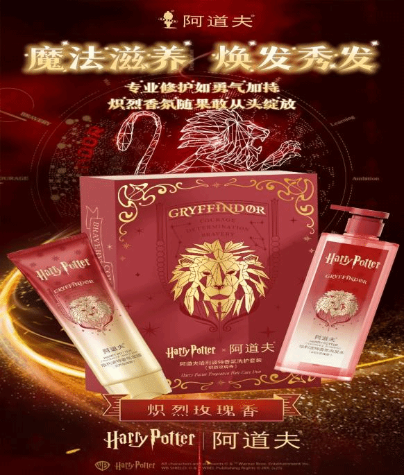 本次创作以“霍格沃茨四院特质”为核心,将阿道夫香氛洗护的“滋养力”转化为对应公司“魔法属性”,让产品既是洗护工具,也是承载公司精神的“发丝魔法信物”,实现外在秀发焕新与内在精神共鸣的双重体验。