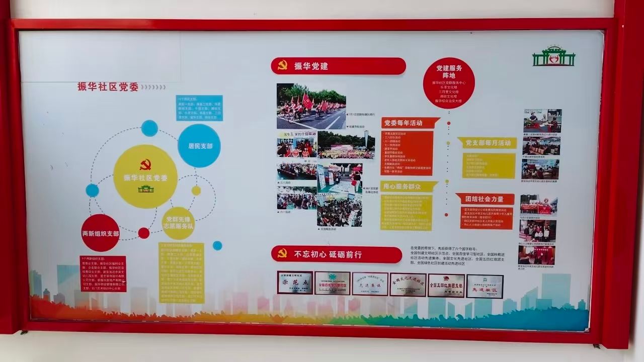 振华社区党群服务中心内,我们跟随负责人浏览了振华社区的历史,振华社区在重点推进“百千万工程”社区营造和“一老一少”关爱活动等工作过程中,注重引导和动员广大居民加入志愿服务队伍,目前1125名志愿者服务总时长超26万小时。